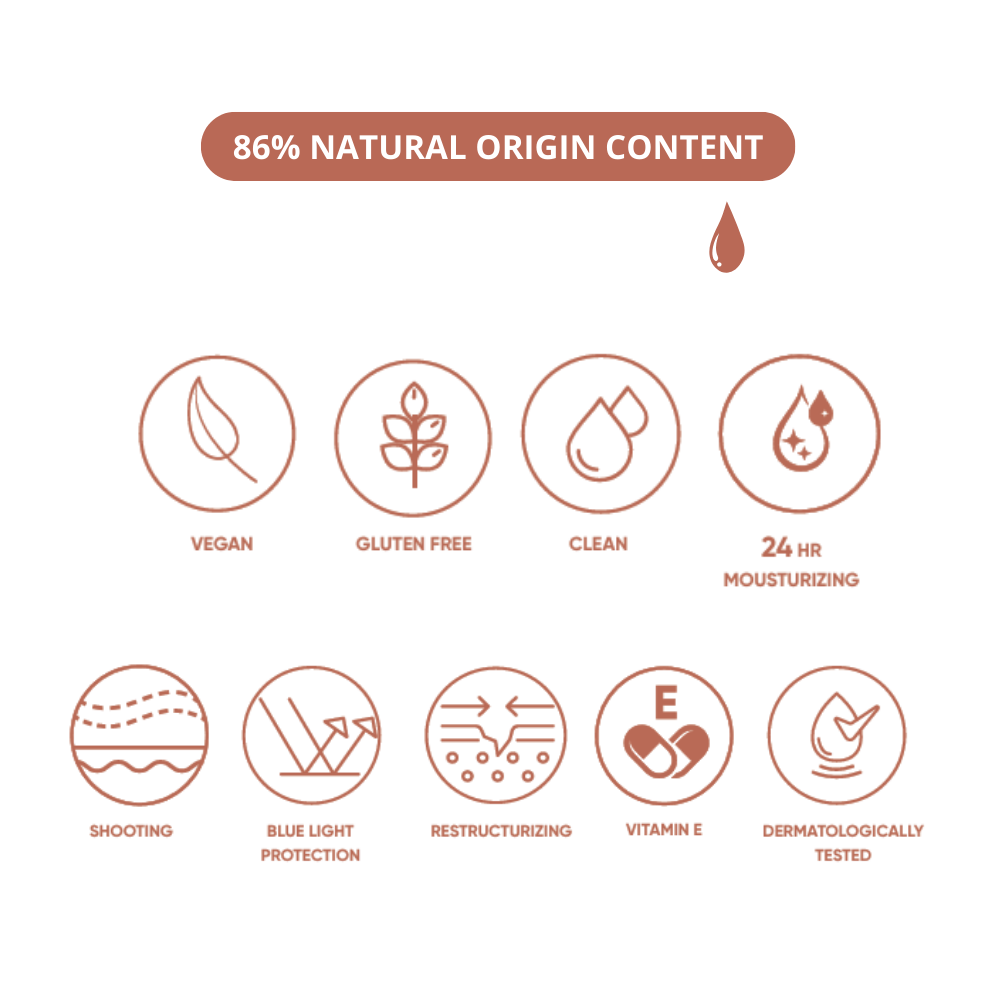 Thanks to its natural soybean oil and rice extract, this foundation protects the skin from blue light and environmental aggressors, while zinc-rich mineral extracts provide additional defense against UV rays. Designed with advanced skincare properties, it supports collagen production, delivers long-lasting hydration, and leaves the skin nourished, radiant, and supple.